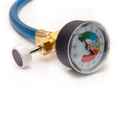 The heavy duty Recharge Hose with Pressure Gauge is suitable for all emzone Refrigerant, Stop Leak and associated products. Use to determine current pressure status of A/C system and ensure accuracy when recharging. The durable brass connectors ensure a safe and secure fit. Includes R134a quick connect. Compatible with R-12 adaptors and A/C Retrofit Conversion Fittings (sold separately).